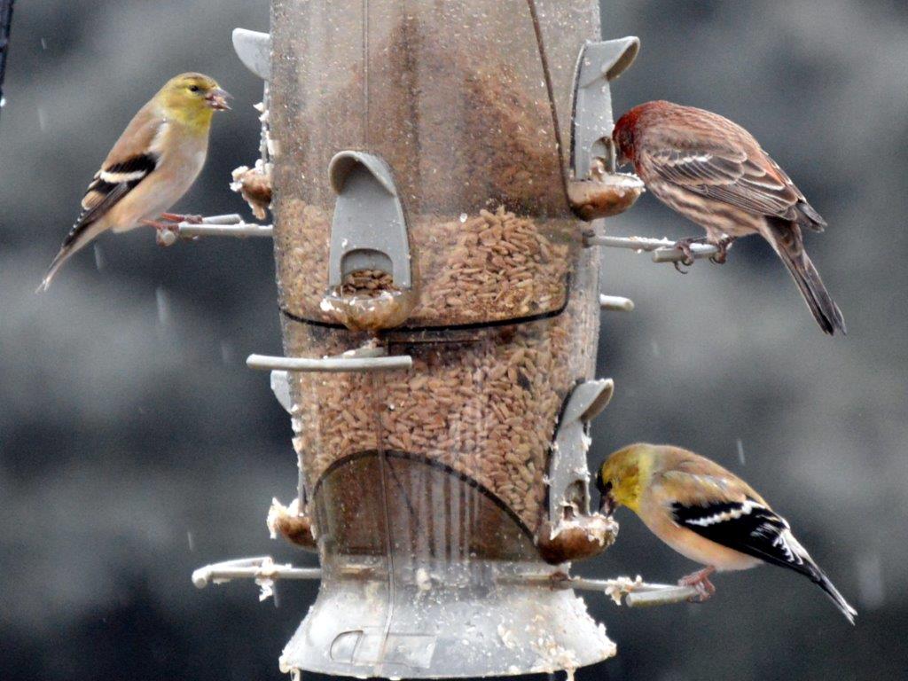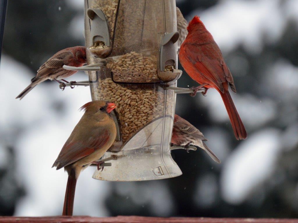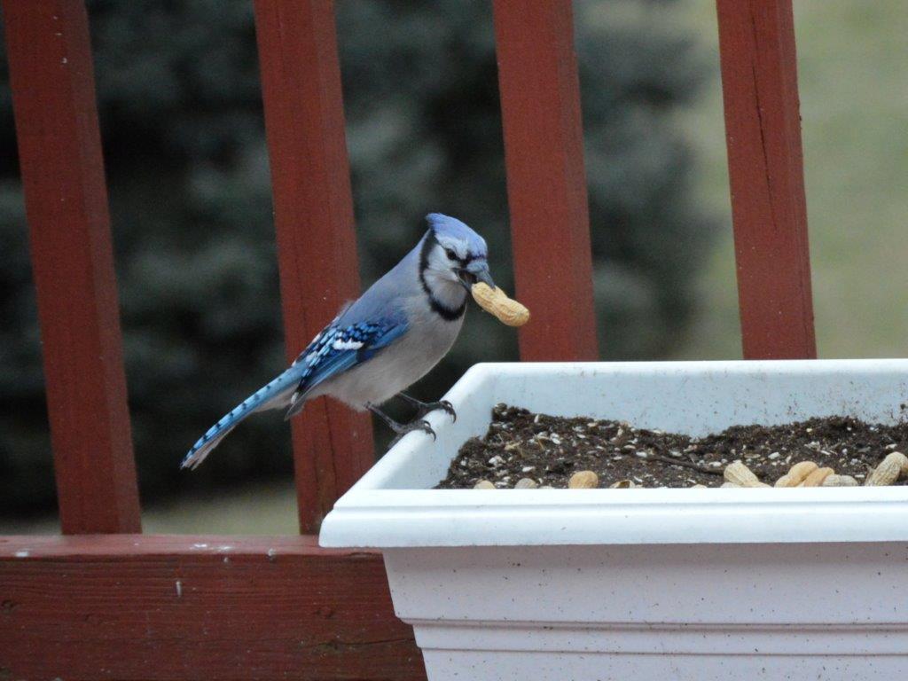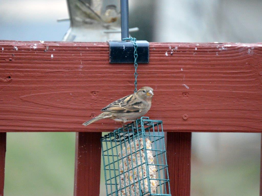 We use safflower seed in the feeder, peanuts, and two kinds of suet to attract a variety of birds, not to mention the sweet water for hummingbirds.