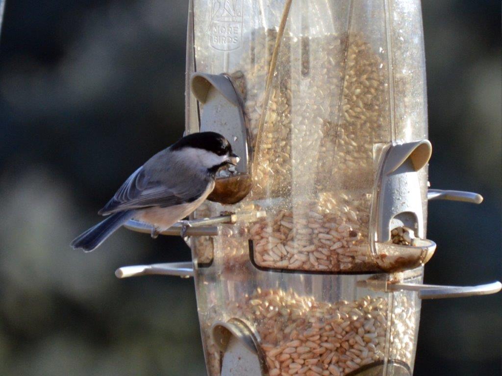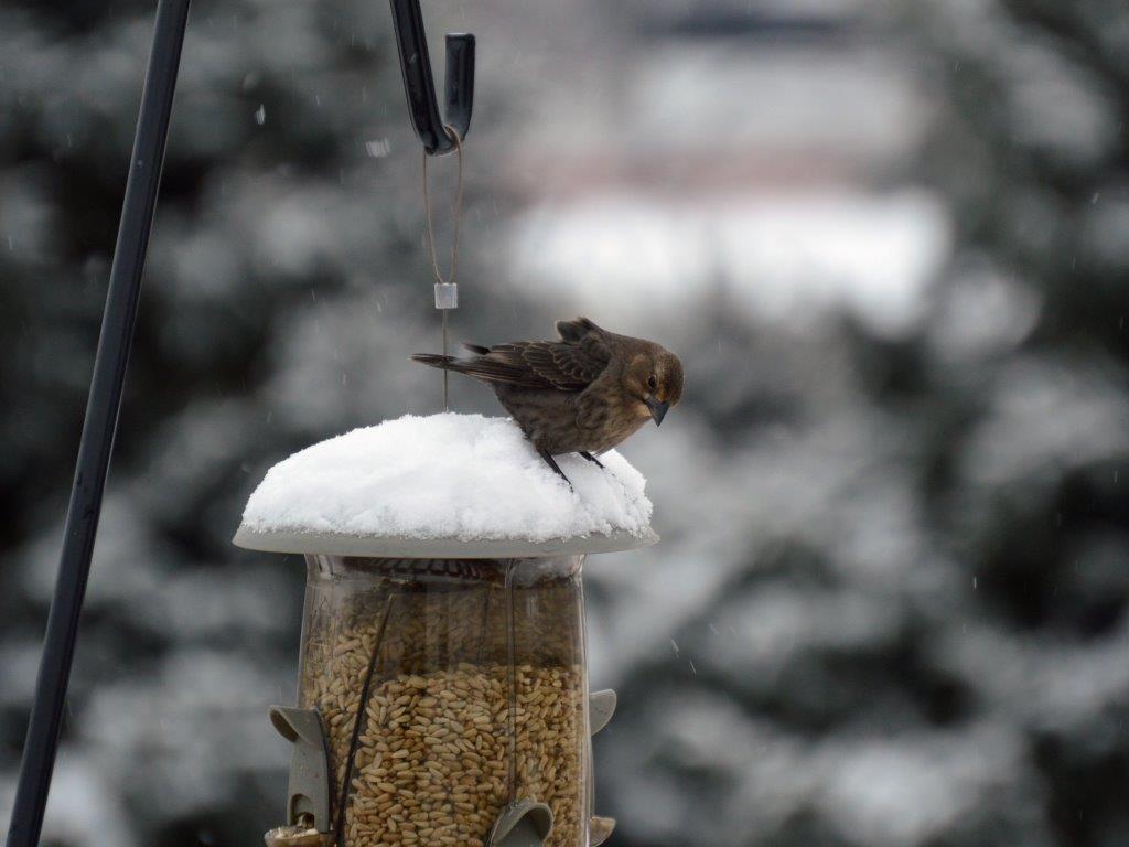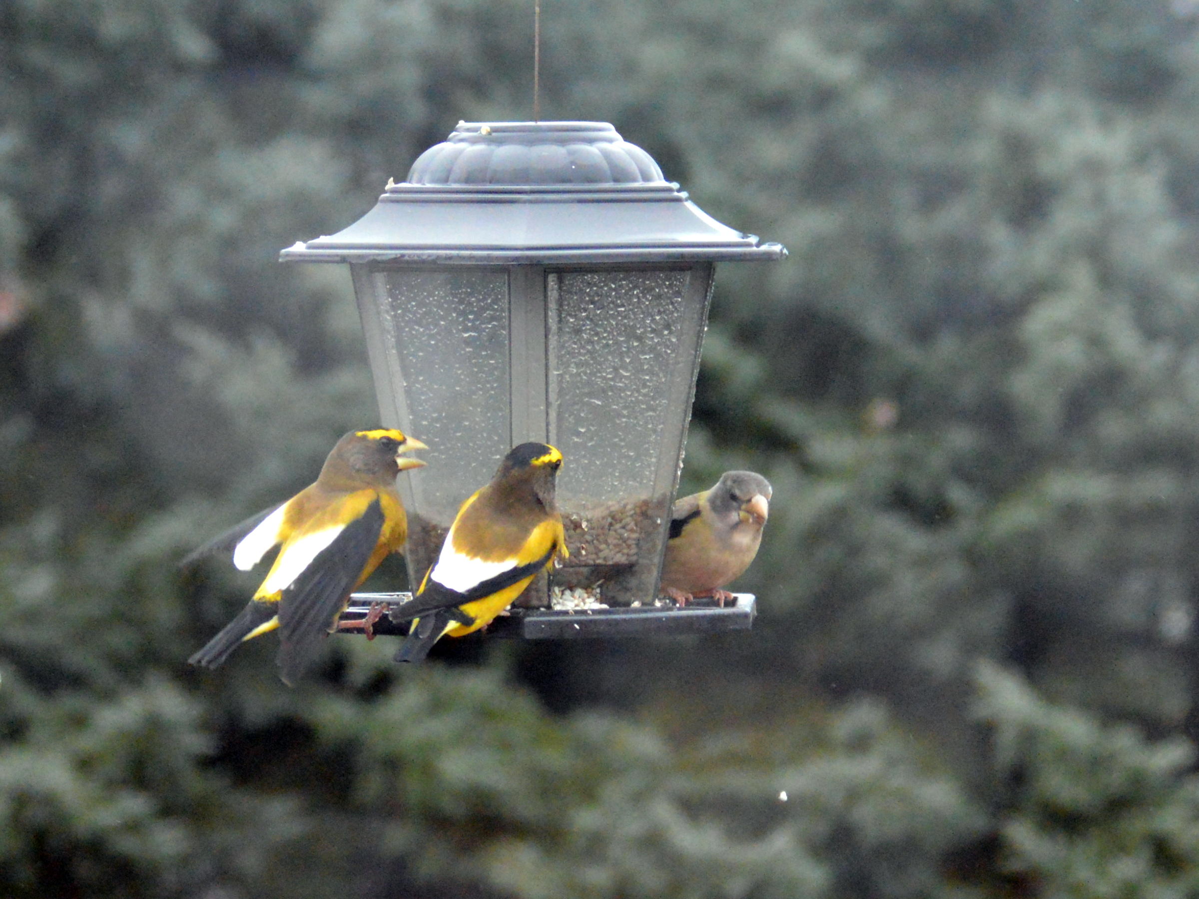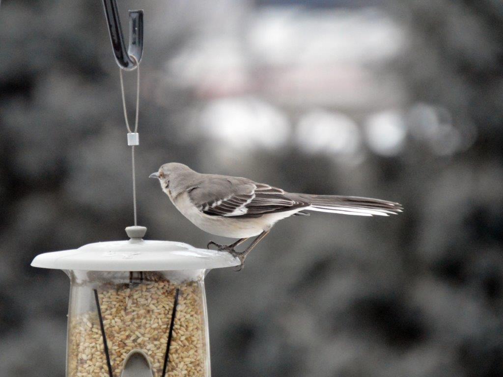 We use safflower seed in the feeder, peanuts, and two kinds of suet to attract a variety of birds, not to mention the sweet water for hummingbirds.